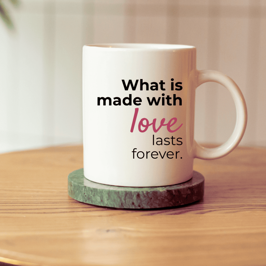 Our mugs are crafted from high-quality ceramic, ensuring durability and a smooth finish.